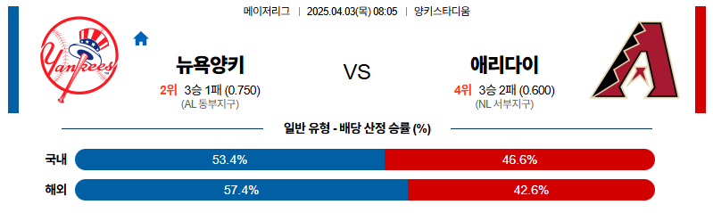 뉴욕양키스 대 애리조나 MLB 04월03일 맞대결 생중계, 스포츠중계, 스포츠분석