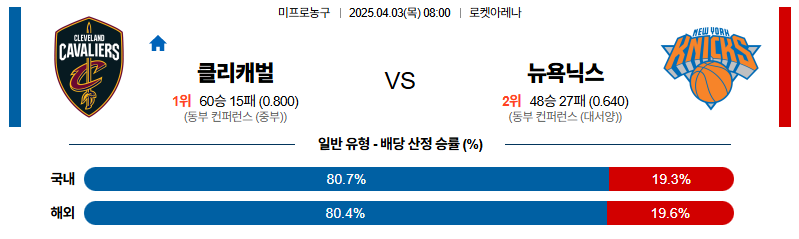클리블랜드 대 뉴욕닉스 NBA 04월03일 맞대결 생중계, 스포츠중계, 스포츠분석