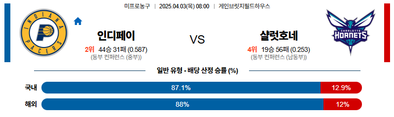 인디애나 대 샬럿 NBA 04월03일 맞대결 생중계, 스포츠중계, 스포츠분석
