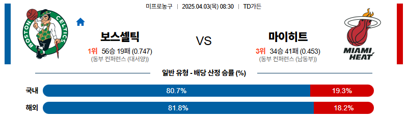 보스턴 대 마이애미 NBA 04월03일 맞대결 생중계, 스포츠중계, 스포츠분석
