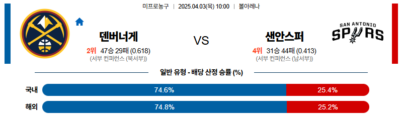 덴버 대 샌안토니오 NBA 04월03일 맞대결 생중계, 스포츠중계, 스포츠분석