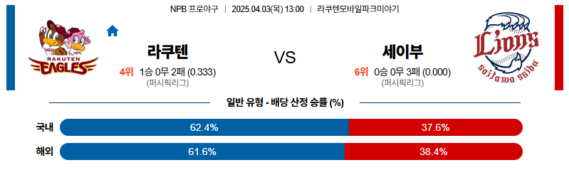 라쿠텐 대 세이부 NPB 04월03일 맞대결 생중계, 스포츠중계, 스포츠분석
