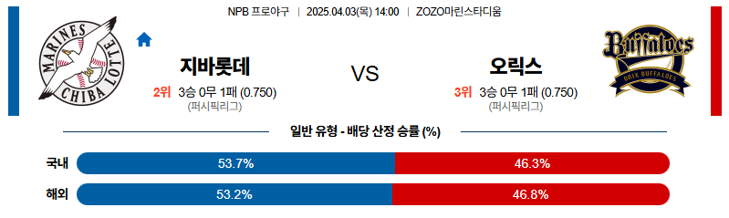 지바롯데 대 오릭스 NPB 04월03일 맞대결 생중계, 스포츠중계, 스포츠분석