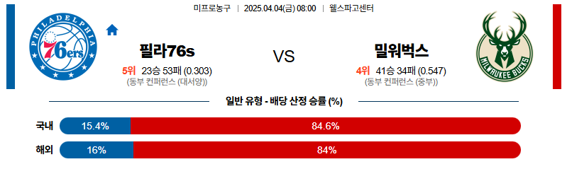 필라델피아 대 밀워키 NBA 04월04일 맞대결 생중계, 스포츠중계, 스포츠분석