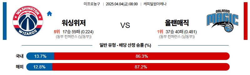 워싱턴 대 올랜도 NBA 04월04일 맞대결 생중계, 스포츠중계, 스포츠분석