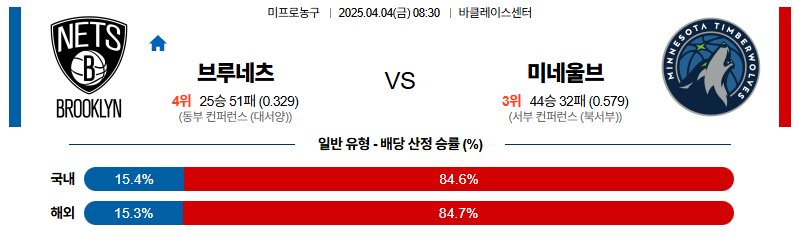 브루클린 대 미네소타 NBA 04월04일 맞대결 생중계, 스포츠중계, 스포츠분석