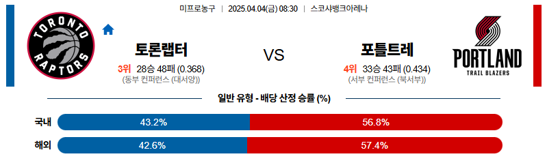 토론토 대 포틀랜드 NBA 04월04일 맞대결 생중계, 스포츠중계, 스포츠분석
