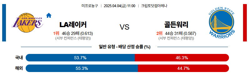 LA레이커스 대 골든스테이트 NBA 04월04일 맞대결 생중계, 스포츠중계, 스포츠분석