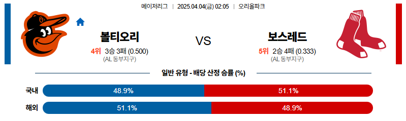 볼티모어 대 보스턴 MLB 04월04일 맞대결 생중계, 스포츠중계, 스포츠분석