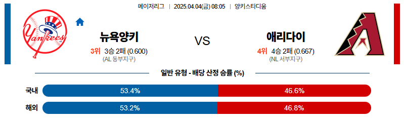뉴욕양키스 대 애리조나 MLB 04월04일 맞대결 생중계, 스포츠중계, 스포츠분석