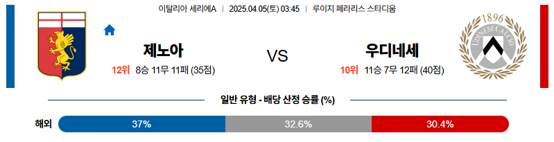 제노아 대 우디네세 세리에A 04월05일 맞대결 생중계, 스포츠중계, 스포츠분석