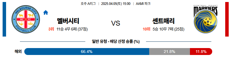 멜버른시티 대 센트럴코스트 호주A리그 04월05일 맞대결 생중계, 스포츠중계, 스포츠분석