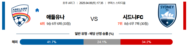 애들레이드 대 시드니FC 호주A리그 04월05일 맞대결 생중계, 스포츠중계, 스포츠분석