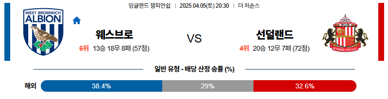 웨스트브롬 대 선덜랜드 잉글랜드챔피언쉽 04월05일 맞대결 생중계, 스포츠중계, 스포츠분석