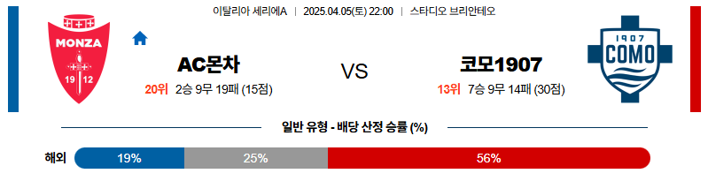 몬차 대 코모 세리에A 04월05일 맞대결 생중계, 스포츠중계, 스포츠분석