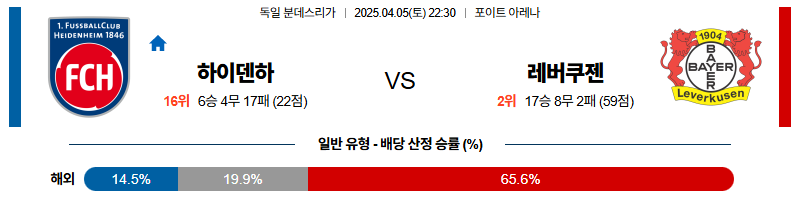 하이덴하임 대 레버쿠젠 분데스리가 04월05일 맞대결 생중계, 스포츠중계, 스포츠분석