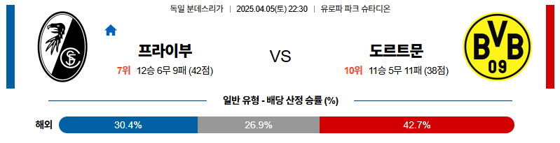 프라이부르크 대 도르트문트 분데스리가 04월05일 맞대결 생중계, 스포츠중계, 스포츠분석
