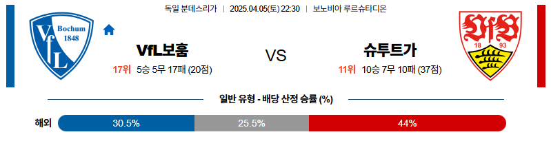 보훔 대 슈투트가르트 분데스리가 04월05일 맞대결 생중계, 스포츠중계, 스포츠분석