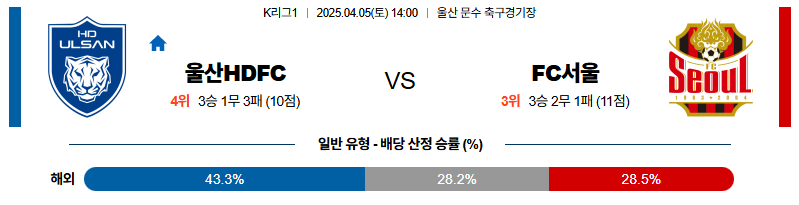 울산 대 FC서울 K리그1 04월05일 맞대결 생중계, 스포츠중계, 스포츠분석