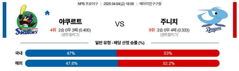야쿠르트 대 주니치 NPB 04월04일 맞대결 생중계, 스포츠중계, 스포츠분석
