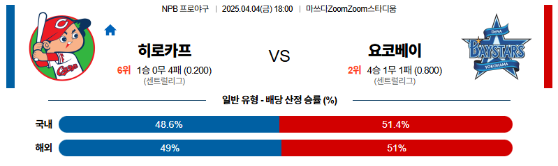 히로시마 대 요코하마 NPB 04월04일 맞대결 생중계, 스포츠중계, 스포츠분석