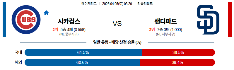 시카고컵스 대 샌디에이고 MLB 04월05일 맞대결 생중계, 스포츠중계, 스포츠분석