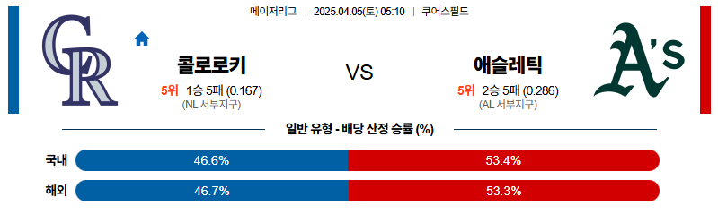 콜로라도 대 애슬레틱스 MLB 04월05일 맞대결 생중계, 스포츠중계, 스포츠분석