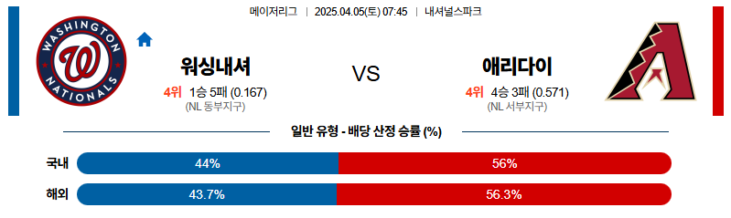 워싱턴 대 애리조나 MLB 04월05일 맞대결 생중계, 스포츠중계, 스포츠분석