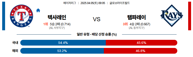 텍사스 대 탬파베이 MLB 04월05일 맞대결 생중계, 스포츠중계, 스포츠분석