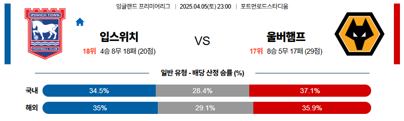 입스위치 대 울버햄튼 프리미어리그 04월05일 맞대결 생중계, 스포츠중계, 스포츠분석