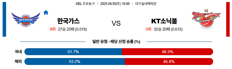 대구한국가스 대 수원KT KBL 04월05일 맞대결 생중계, 스포츠중계, 스포츠분석