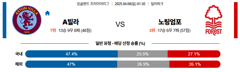 애스턴빌라 대 노팅엄 프리미어리그 04월06일 맞대결 생중계, 스포츠중계, 스포츠분석