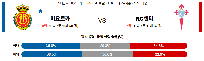 마요르카 대 셀타비고 라리가 04월06일 맞대결 생중계, 스포츠중계, 스포츠분석