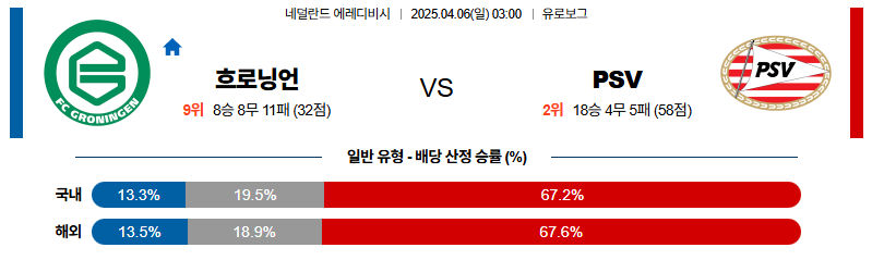 흐로닝언 대 PSV아인트호벤 에레디비지에 04월06일 맞대결 생중계, 스포츠중계, 스포츠분석