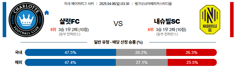 샬럿 대 내슈빌 메이저리그사커 04월06일 맞대결 생중계, 스포츠중계, 스포츠분석