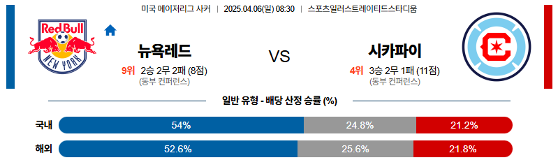 레드불스 대 시카고 메이저리그사커 04월06일 맞대결 생중계, 스포츠중계, 스포츠분석