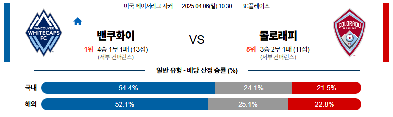 밴쿠버 대 콜로라도 메이저리그사커 04월06일 맞대결 생중계, 스포츠중계, 스포츠분석
