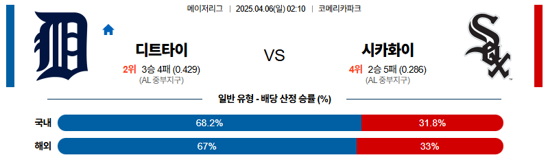 디트로이트 대 시카고W MLB 04월06일 맞대결 생중계, 스포츠중계, 스포츠분석
