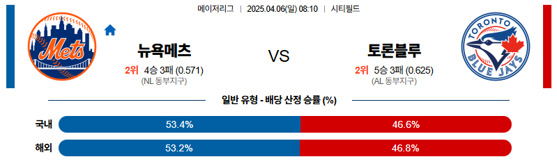 뉴욕메츠 대 토론토 MLB 04월06일 맞대결 생중계, 스포츠중계, 스포츠분석