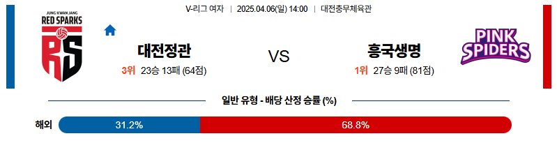 정관장 대 흥국생명 V리그(여) 04월06일 맞대결 생중계, 스포츠중계, 스포츠분석