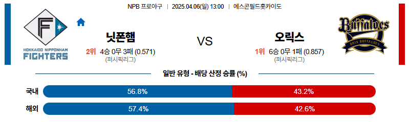 니혼햄 대 오릭스 NPB 04월06일 맞대결 생중계, 스포츠중계, 스포츠분석