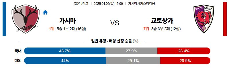 가시마 대 교토상가 J리그1 04월06일 맞대결 생중계, 스포츠중계, 스포츠분석