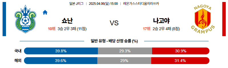 쇼난 대 나고야 J리그1 04월06일 맞대결 생중계, 스포츠중계, 스포츠분석