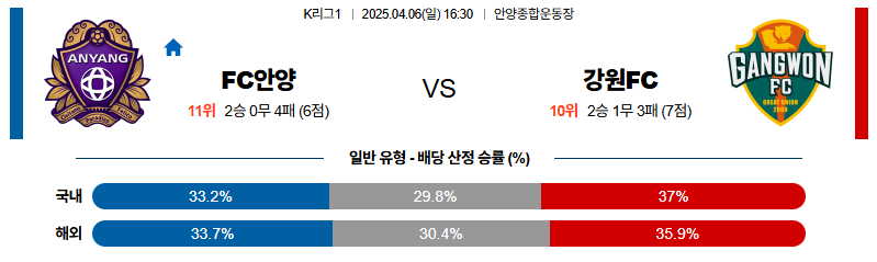 FC안양 대 강원FC K리그1 04월06일 맞대결 생중계, 스포츠중계, 스포츠분석
