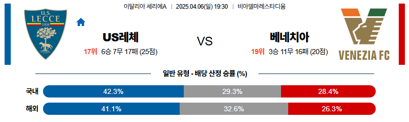 레체 대 베네치아 세리에A 04월06일 맞대결 생중계, 스포츠중계, 스포츠분석