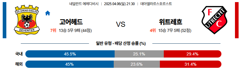 고어헤드 대 위트레흐트 에레디비지에 04월06일 맞대결 생중계, 스포츠중계, 스포츠분석