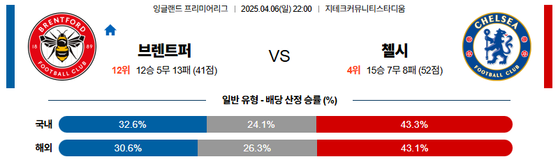브렌트퍼드 대 첼시 프리미어리그 04월06일 맞대결 생중계, 스포츠중계, 스포츠분석