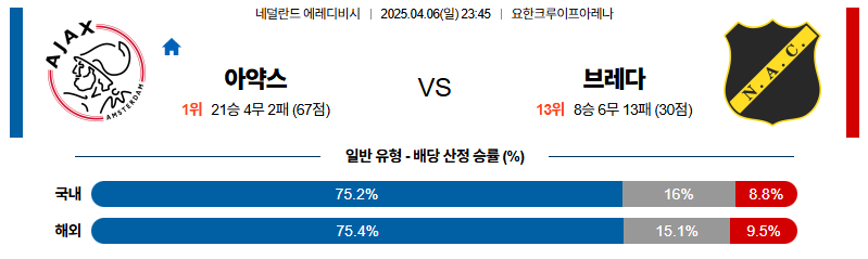 아약스 대 브레다 에레디비지에 04월06일 맞대결 생중계, 스포츠중계, 스포츠분석