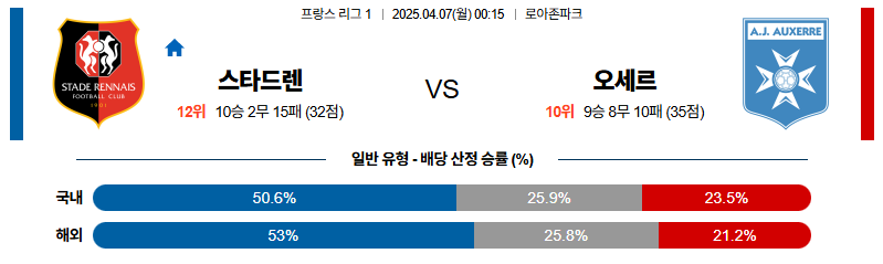 렌 대 옥세르 리그앙 04월07일 맞대결 생중계, 스포츠중계, 스포츠분석