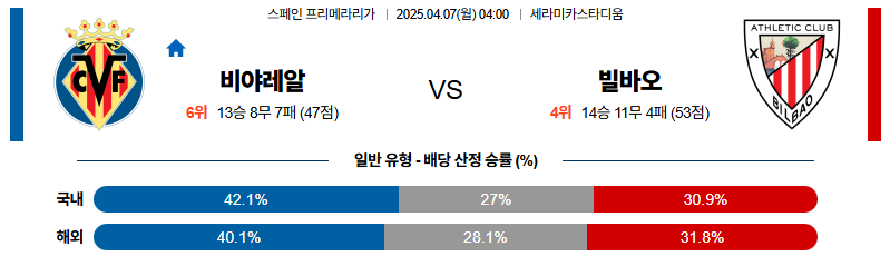 바야돌리드는 전방과 수비에서의 동시 이탈로 인해 전력 균형이 크게 무너진 상태입니다. 헤타페는 수비 집중력이 높고, 미드필드 운영에서도 상대를 압도할 수 있는 자원을 갖추고 있습니다. 다득점 경기가 나오기는 어렵겠지만, 헤타페의 실리 축구가 빛을 발할 가능성이 높습니다.